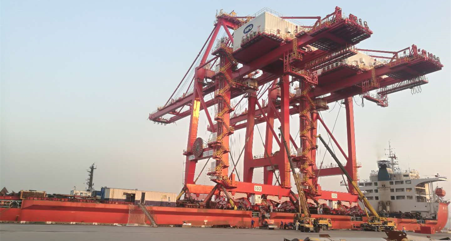 桥吊运输由自航式甲板船“新辰海洋”青岛至上海